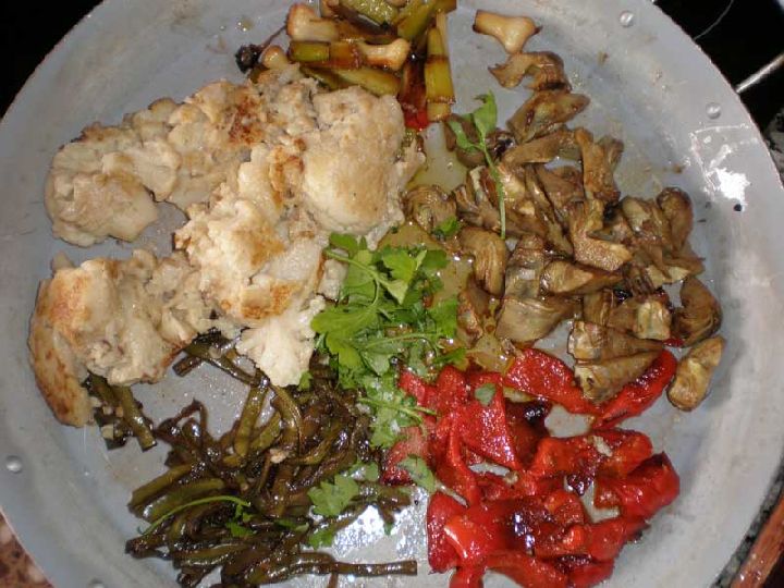 -Arroz (100gr. por persona, que vienen a ser dos puñados,y se le añaden dos más al final " para la sartén", es decir , por si alguien quiere repetir)